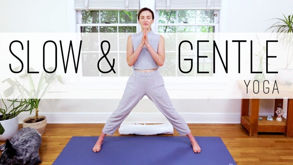 Cat–Cow, Child’s Pose, Supported Bridge, and Legs-Up-the-Wall are ideal beginner-friendly poses that don’t strain sensitive joints.
